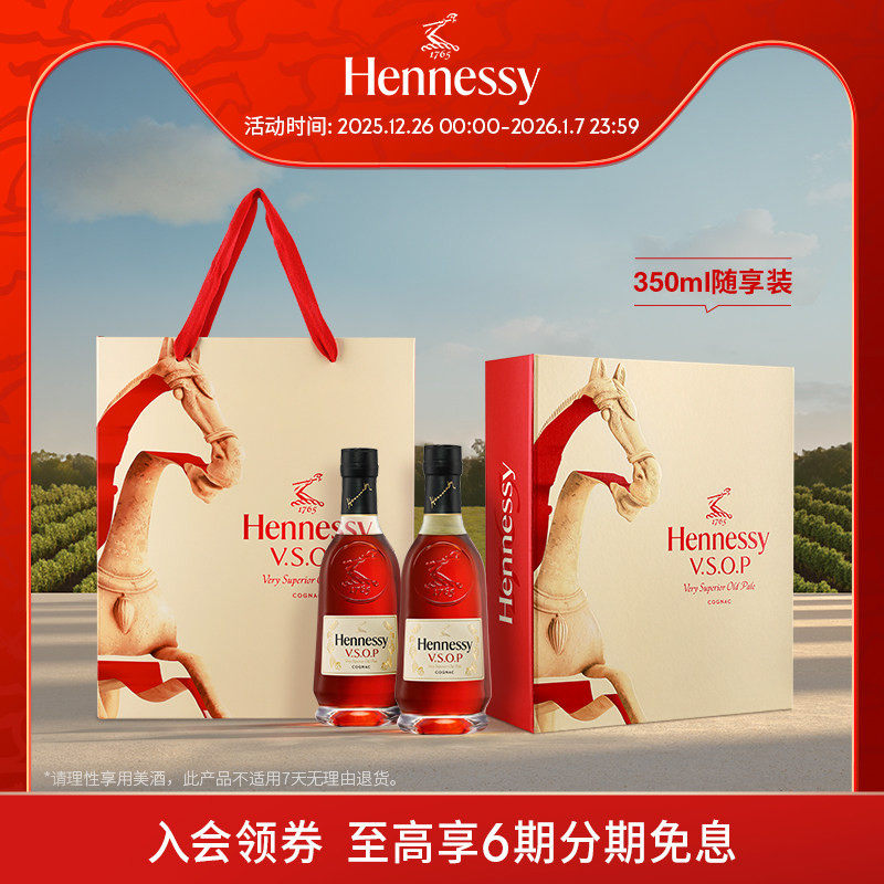【官方直营】轩尼诗VSOP干邑白兰地350ml*2随享装+50ml*2洋酒正品