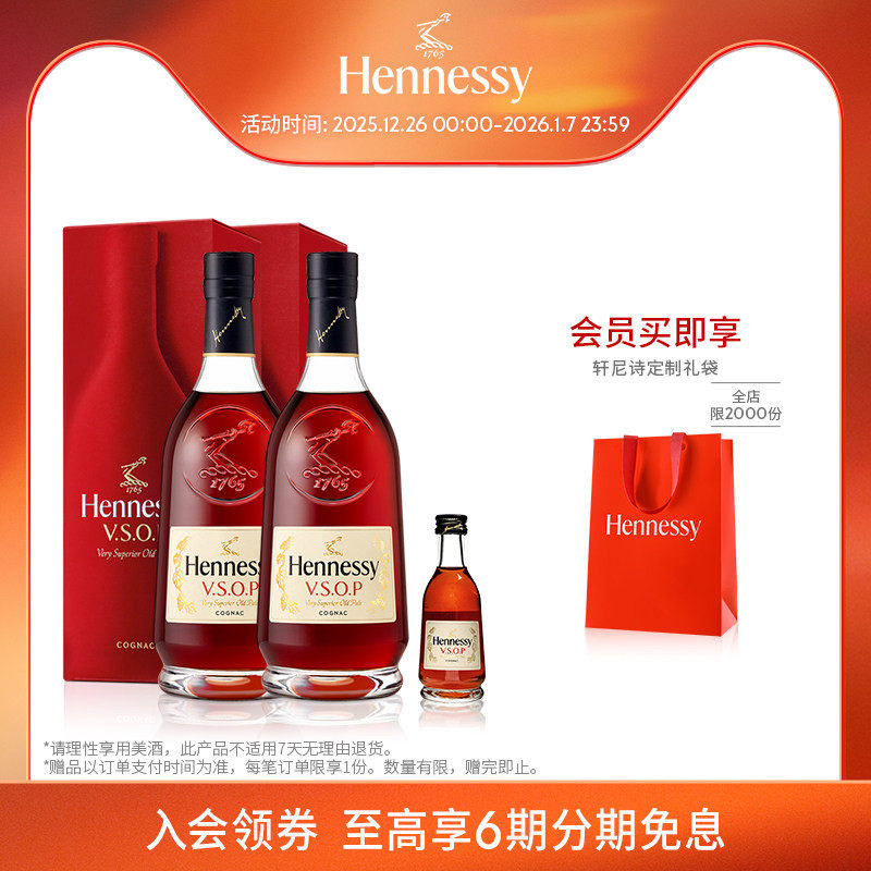 【官方直营】焕新上市轩尼诗VSOP干邑白兰地700ml*2 +50ml洋酒