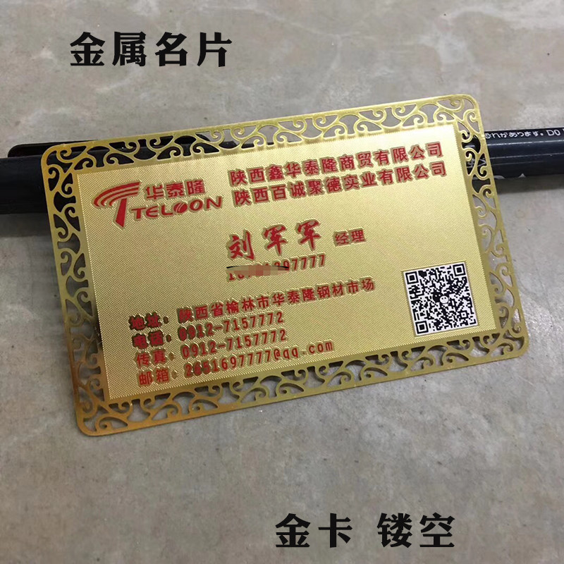 高档名片印刷专业制作双面彩色金属卡片商务高端个性定制免费设计镂空创意贵宾会员卡纯铜不锈钢拉丝金色vip