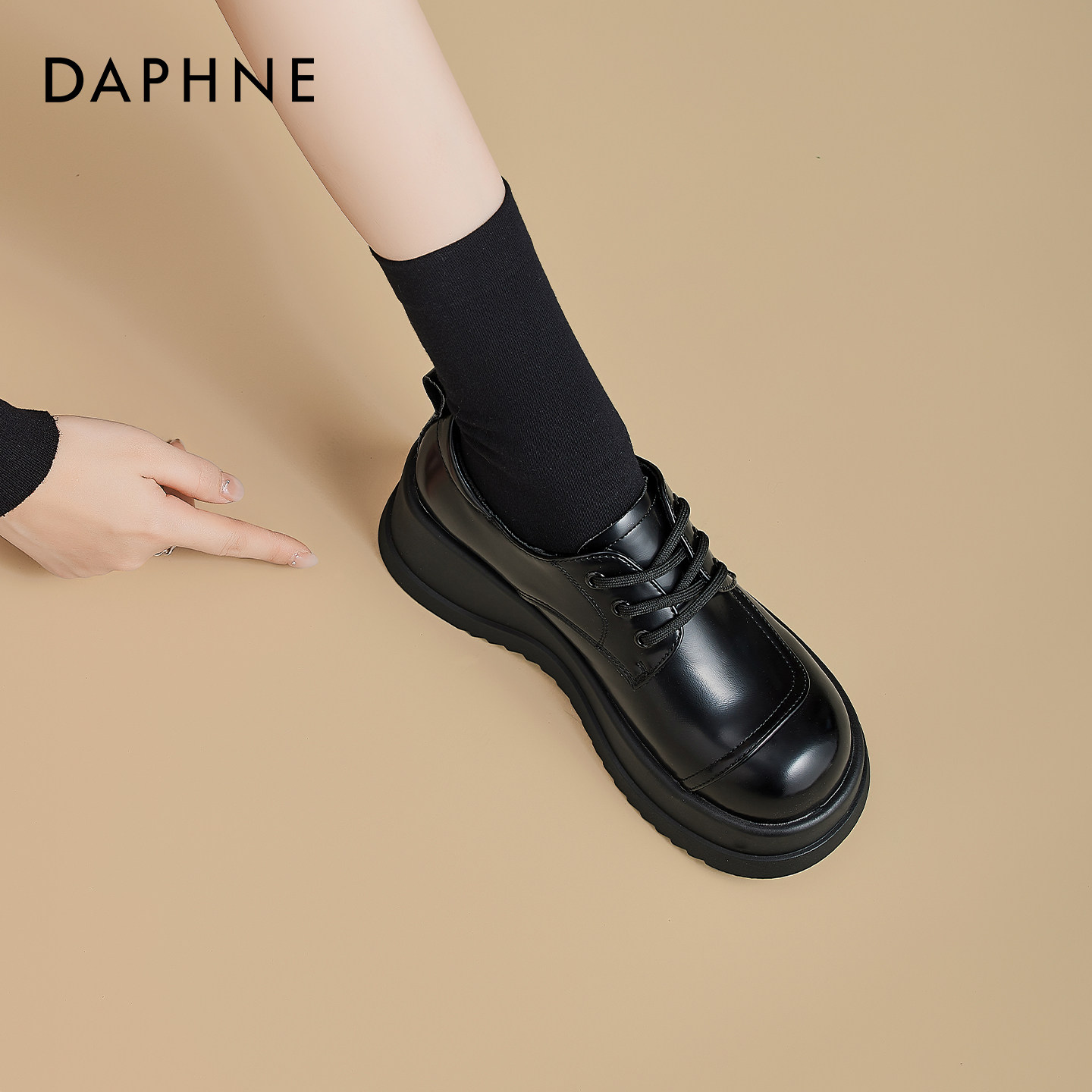 达芙妮黑色乐福鞋女款2026冬季新款英伦风小皮鞋系带厚底增高单鞋