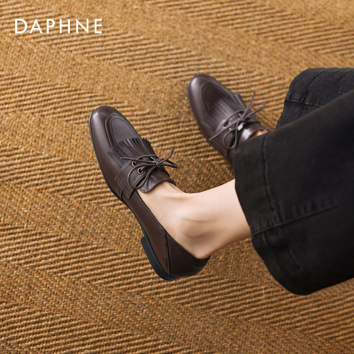 达芙妮一脚蹬流苏乐福鞋女2026新款春季英伦风通勤小皮鞋系带单鞋