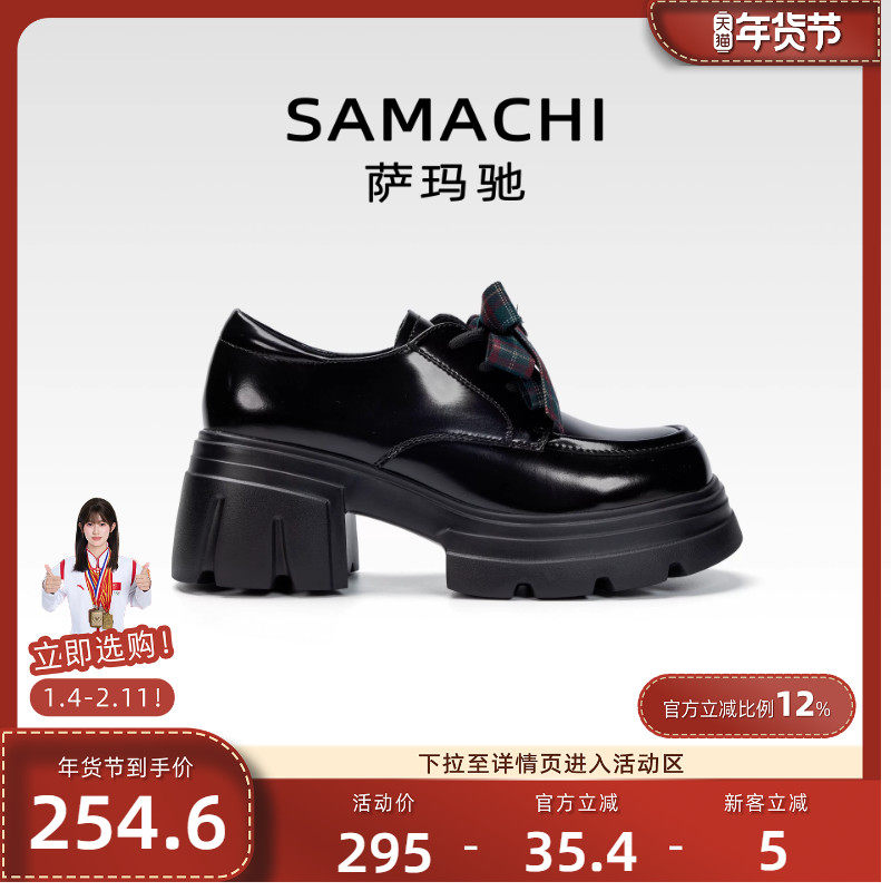 SAMACHI萨玛驰2026新款时尚厚底小皮鞋系带乐福鞋女百搭增高鞋7cm
