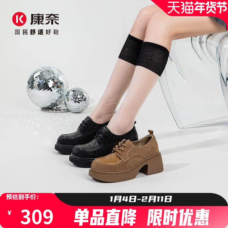 康奈女鞋2025秋季新款英伦风小皮鞋系带真皮纯色软底百搭方跟单鞋