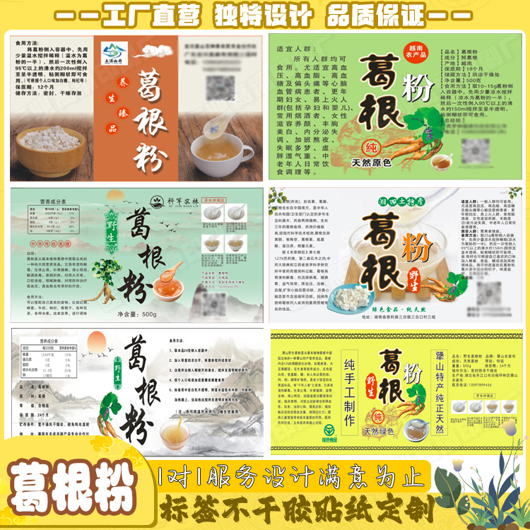 设计葛根粉标签百合粉木瓜粉魔芋粉荞麦粉椰子粉不干胶贴定制印刷
