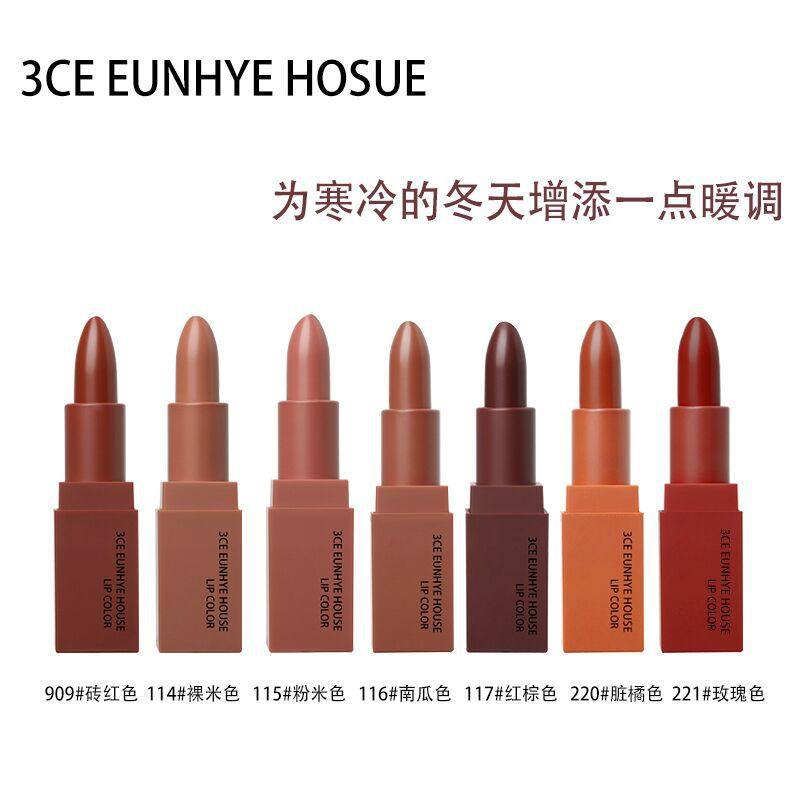 年货节 3CEEUNHYE HOUSE秋冬款南瓜色口红雾面哑光脏橘色砖红色