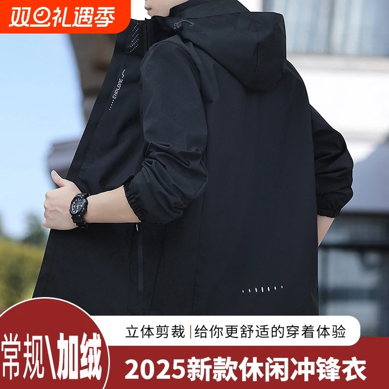 男士春秋款潮流情侣夹克防风防水时尚宽松户外加绒加厚冲锋衣外套