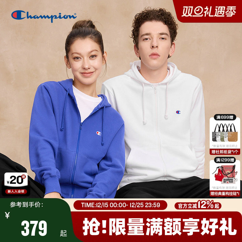 Champion冠军情侣连帽卫衣男春秋款拉链开衫女休闲外套简约韩系