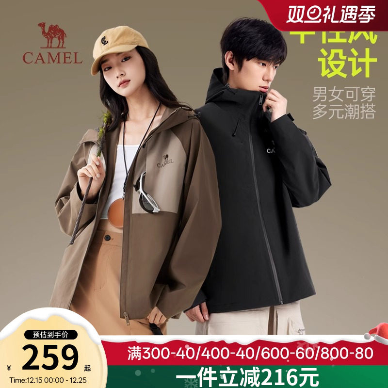 骆驼情侣外套男春秋款潮流夹克2025户外防水登山服风衣防风旅行服