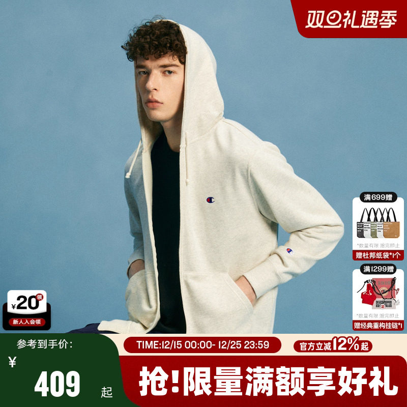 Champion冠军卫衣春秋款开衫连帽情侣春秋运动拉链外套简约休闲