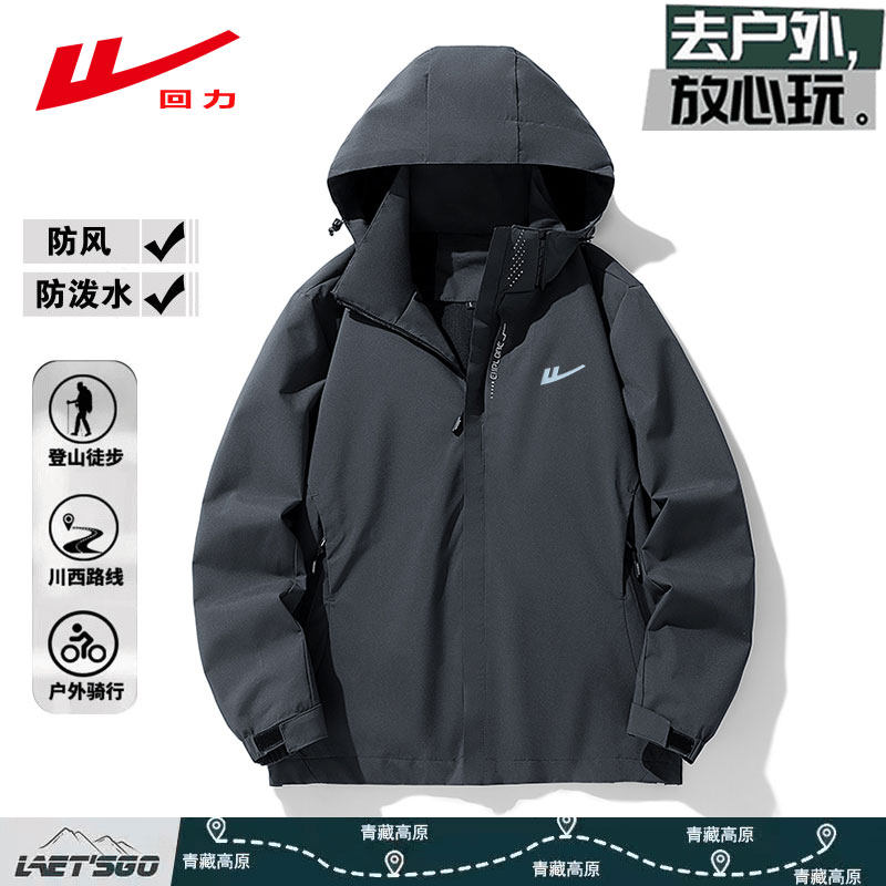 回力户外冲锋衣外套男女春秋款连帽防风防水情侣款徒步登山服定制