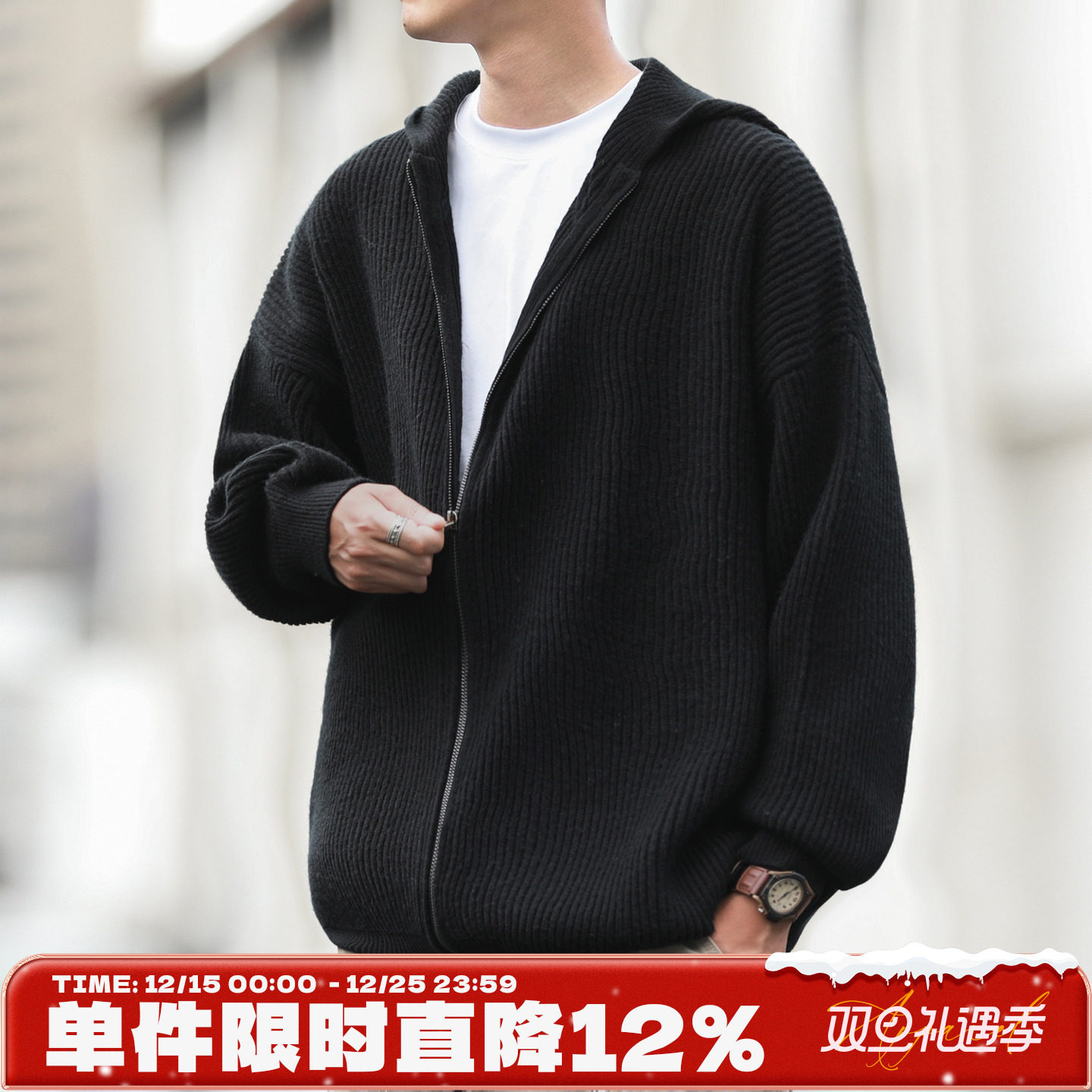 嘿马七作日系复古春秋款男生连帽针织开衫宽松休闲情侣毛衣外套潮