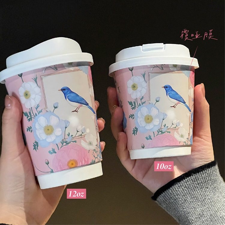 喜上眉梢纸杯咖啡杯加厚奶茶店专用防烫打包杯带盖冷热饮高档纸杯