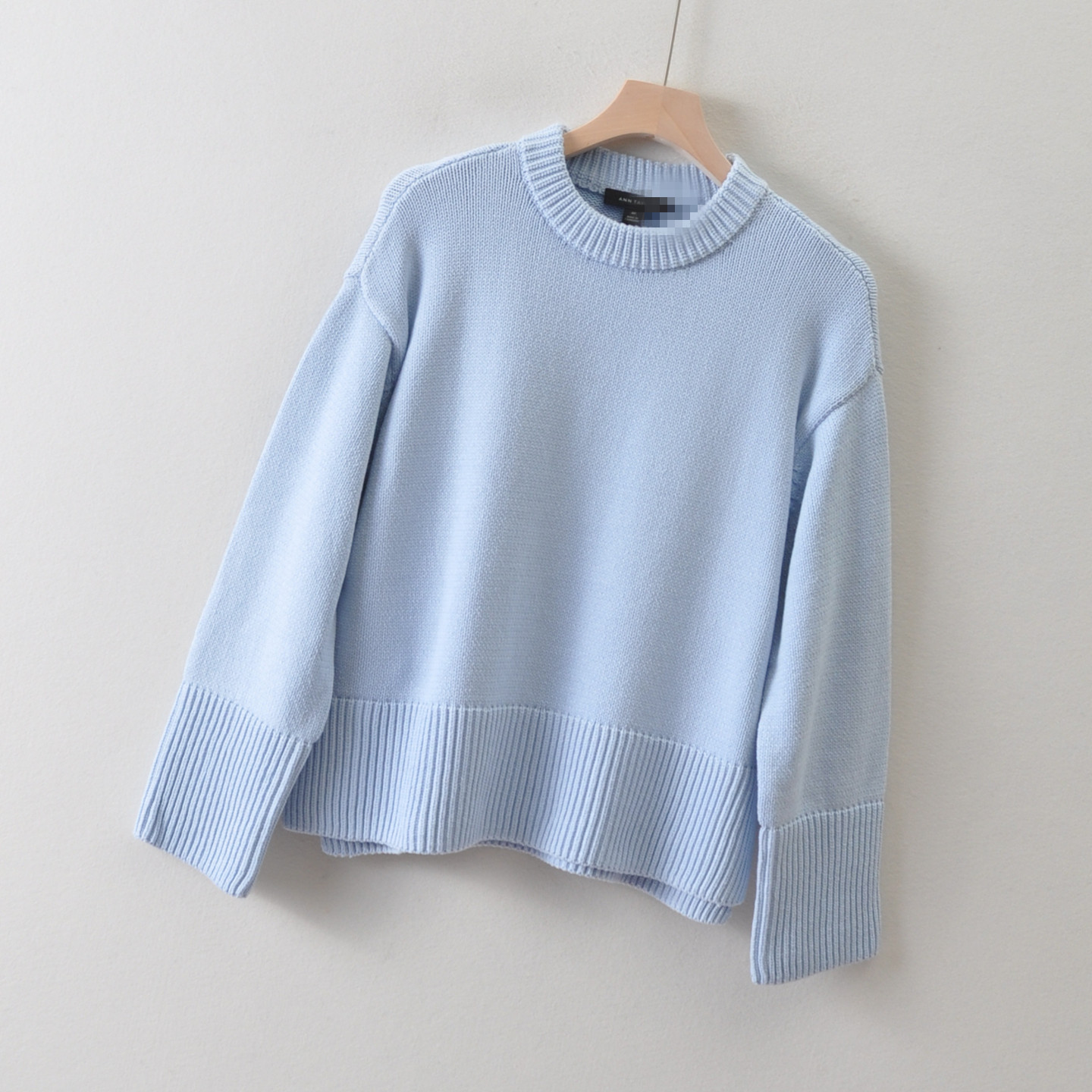 欧版粗线圆领棉线毛衣女套头针织打底衫宽松慵懒秋冬加厚大码年轻