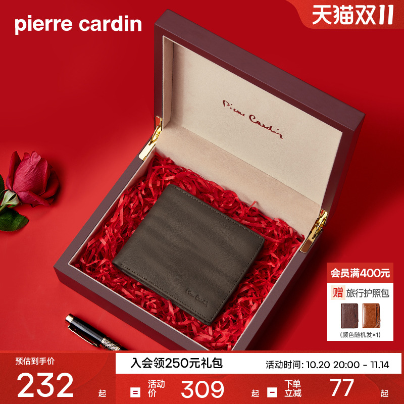 【真皮】皮尔卡丹送礼男钱包卡包一体男生短款正品皮夹子新款钱夹