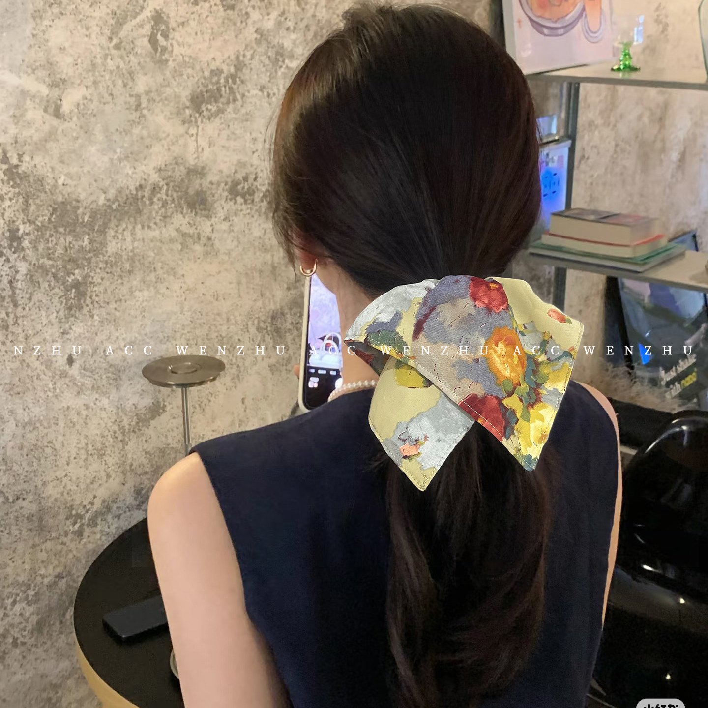 复古高级感油画风花朵方巾发圈女高弹扎头发头绳气质韩国肠圈头饰