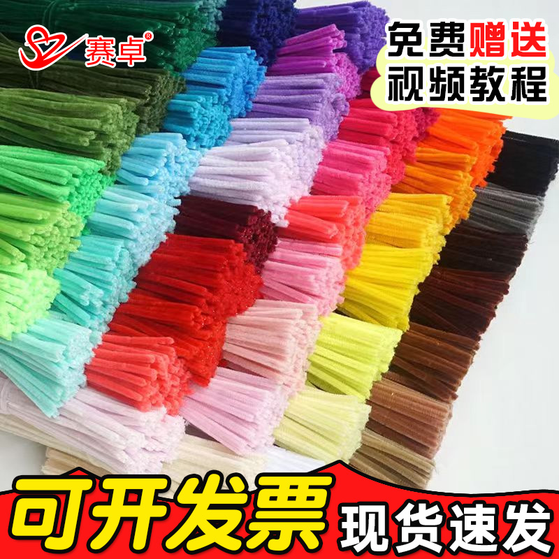 100根毛根扭扭棒彩色毛条diy幼儿园手工材料儿童创意益智美术毛绒条