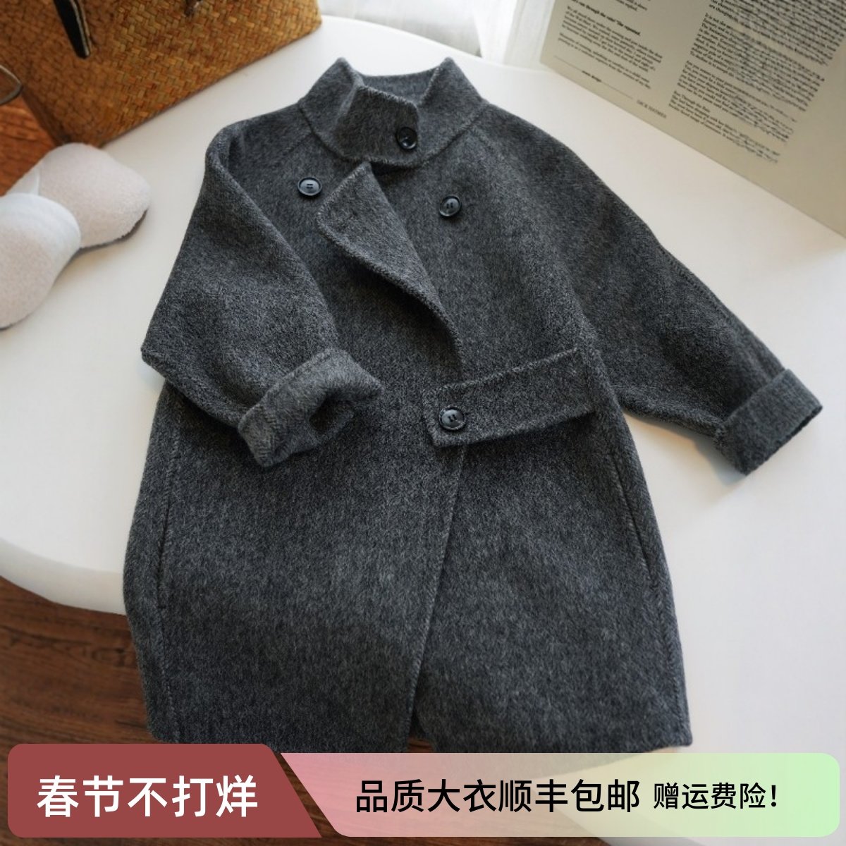 小个子儿童双面羊绒大衣小立领男女童双面呢大衣秋冬加厚毛呢外套