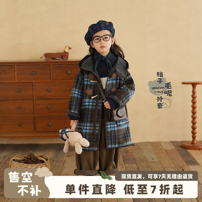 小童木 千金风女童毛呢大衣2025新款夹棉加厚儿童中长款呢子外套