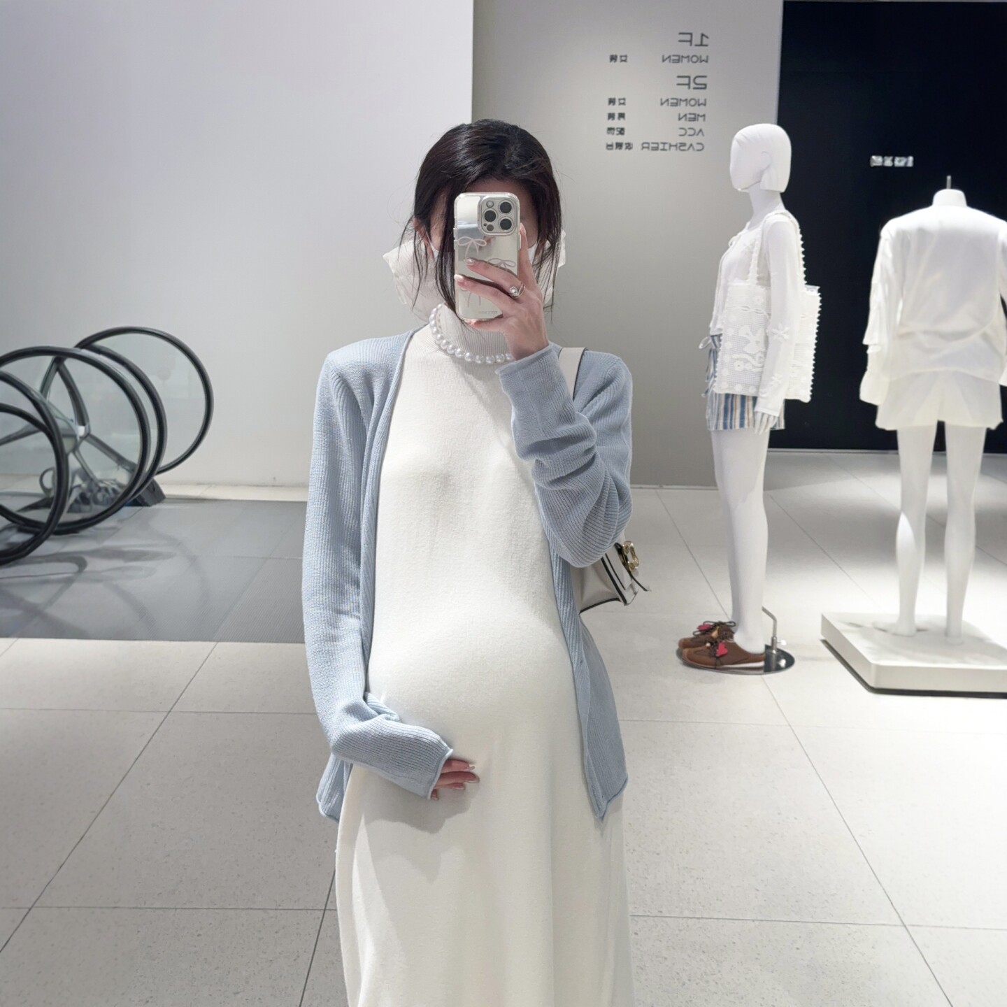 HAIDE妈咪孕妇装半高领短袖法式气质高级感显瘦中长孕妇裙连衣裙