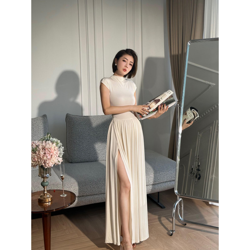 XULU原创夏季简约铜氨丝高领纯色裙气质女神显瘦修身遮肉连衣裙