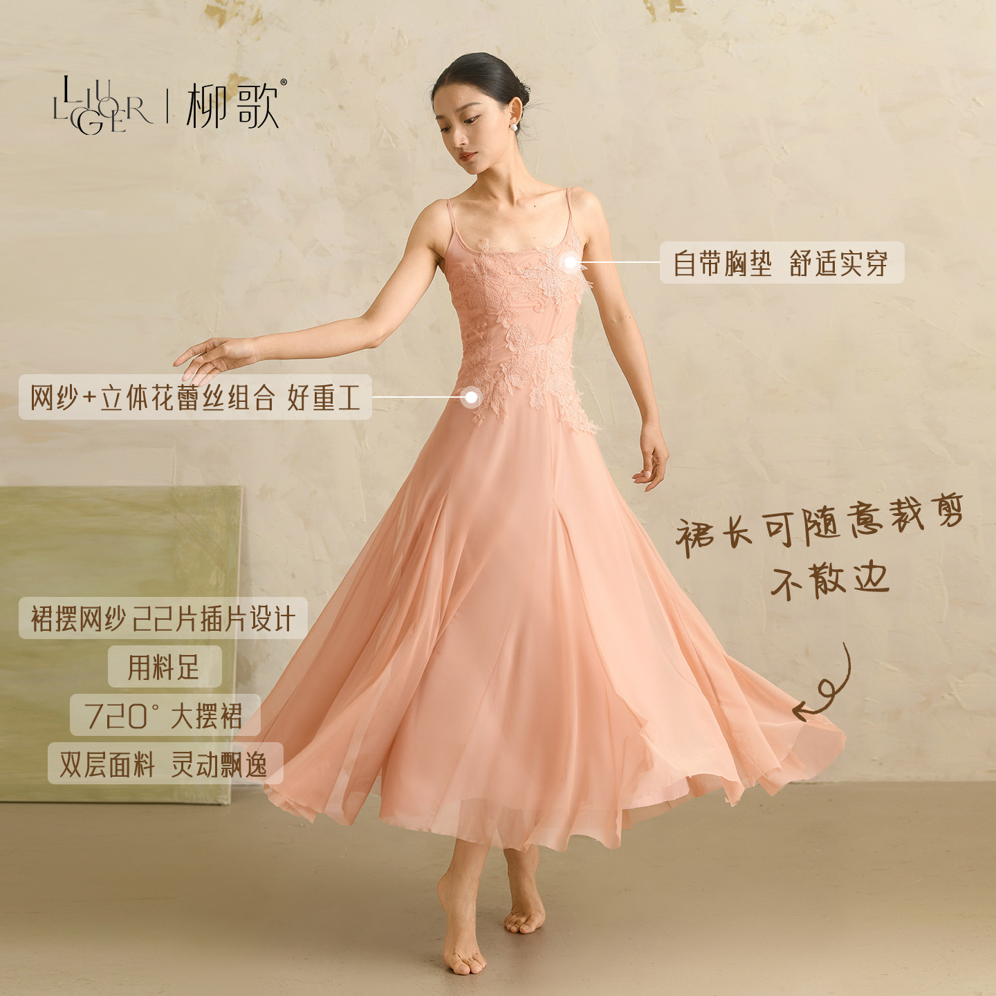 柳歌古典舞蹈服女吊带蕾丝大摆裙飘逸现代舞练功服冬季打底连衣裙