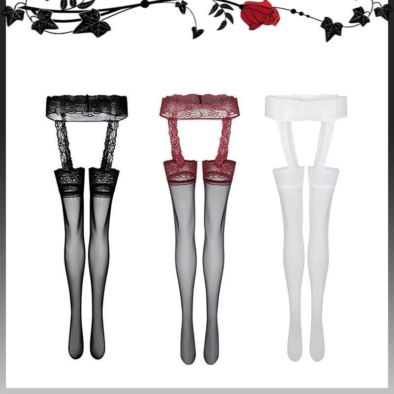 蕾丝花边一体式吊带丝袜性感美腿黑丝长筒袜超薄白丝大腿袜过膝女