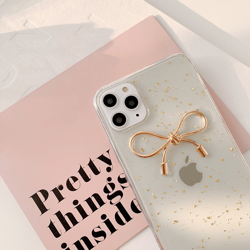 简约日韩金箔立体蝴蝶结适用苹果16 15promax手机壳iPhone14 13新款闪粉12 11pro滴胶xsmax软壳8p保护套7少女
