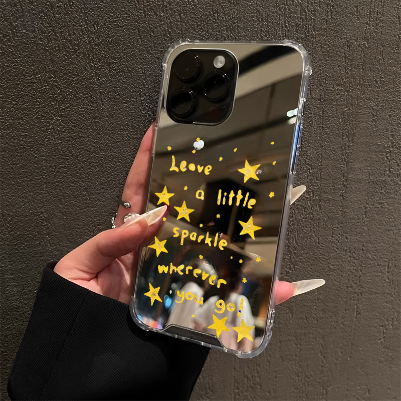 星星去哪都能闪耀适用iPhone7promax镜面15promax文字14Pro苹果16手机壳xr创意13简约12补妆7/8plus情侣xs潮