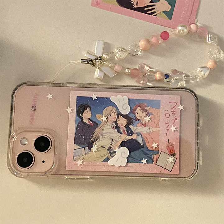 happinessono原创韩系ins细闪翅膀星星亚克力细闪壳追星二次元放卡片透明手机壳可爱适用于苹果7pxr1716