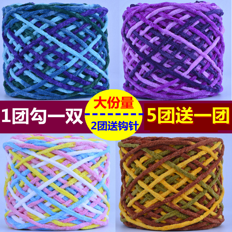 粗毛线手工编织拖鞋线钩鞋线粗围巾毛线七彩毛线孺子牛鞋底冰条线