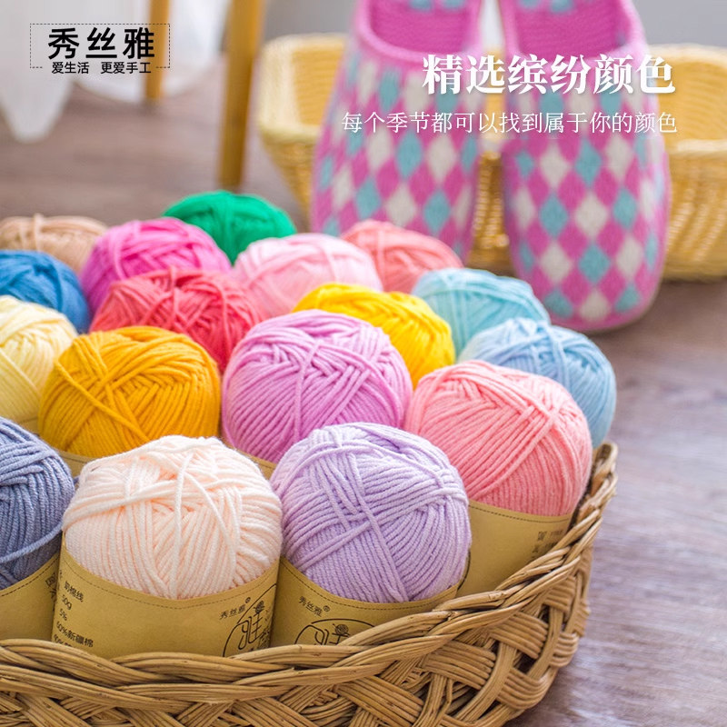秀丝雅四股牛奶棉毛线4股宝宝婴儿童手工diy勾鞋线亲肤钩针编织线