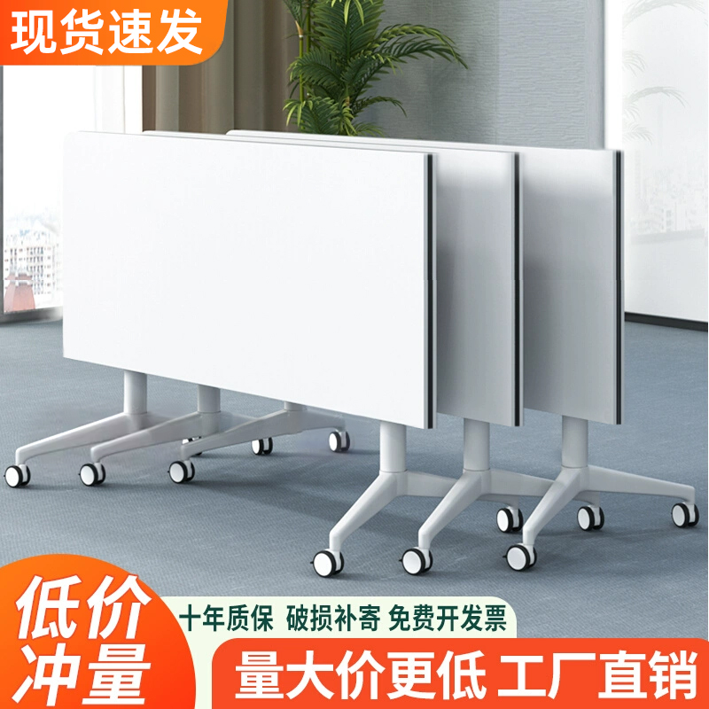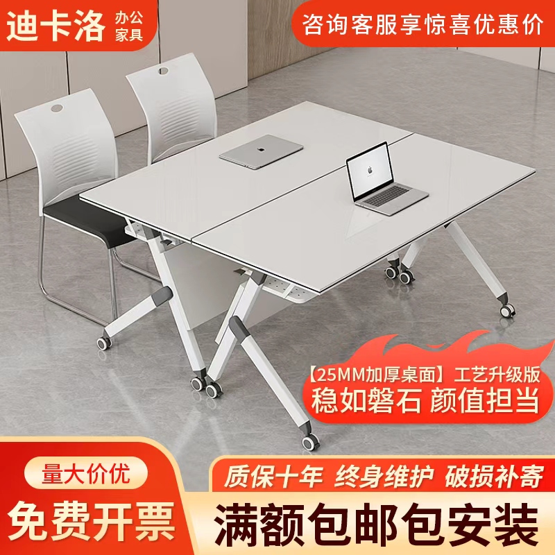 折叠会议桌可拼接移动长条桌带轮子多功能办公辅导班培训桌椅组合