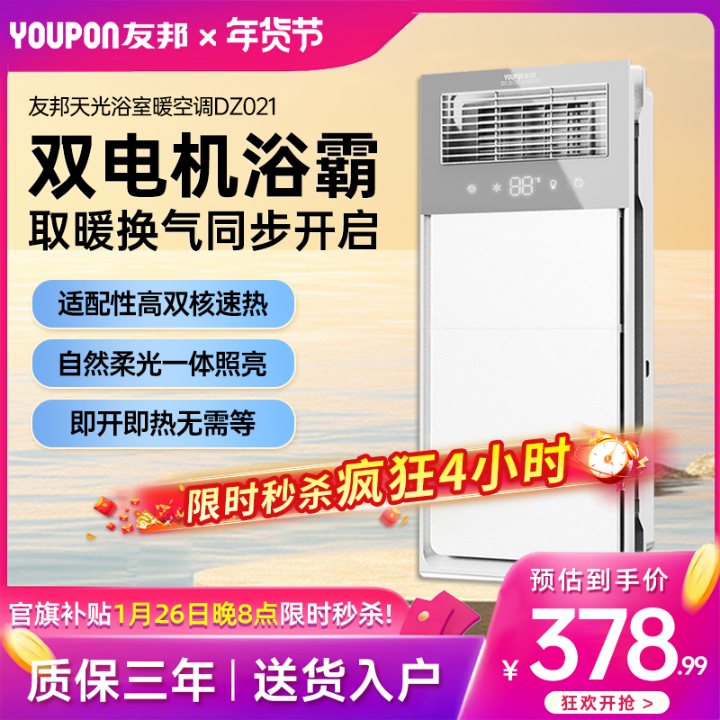 友邦双电机风暖浴霸浴室卫生间吹风照明换气一体暖风取暖机DZ021