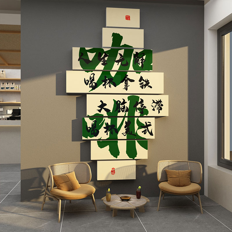 极速咖啡店装饰墙面贴壁画厅角馆背景网J红摆件品氛围布置拍照区