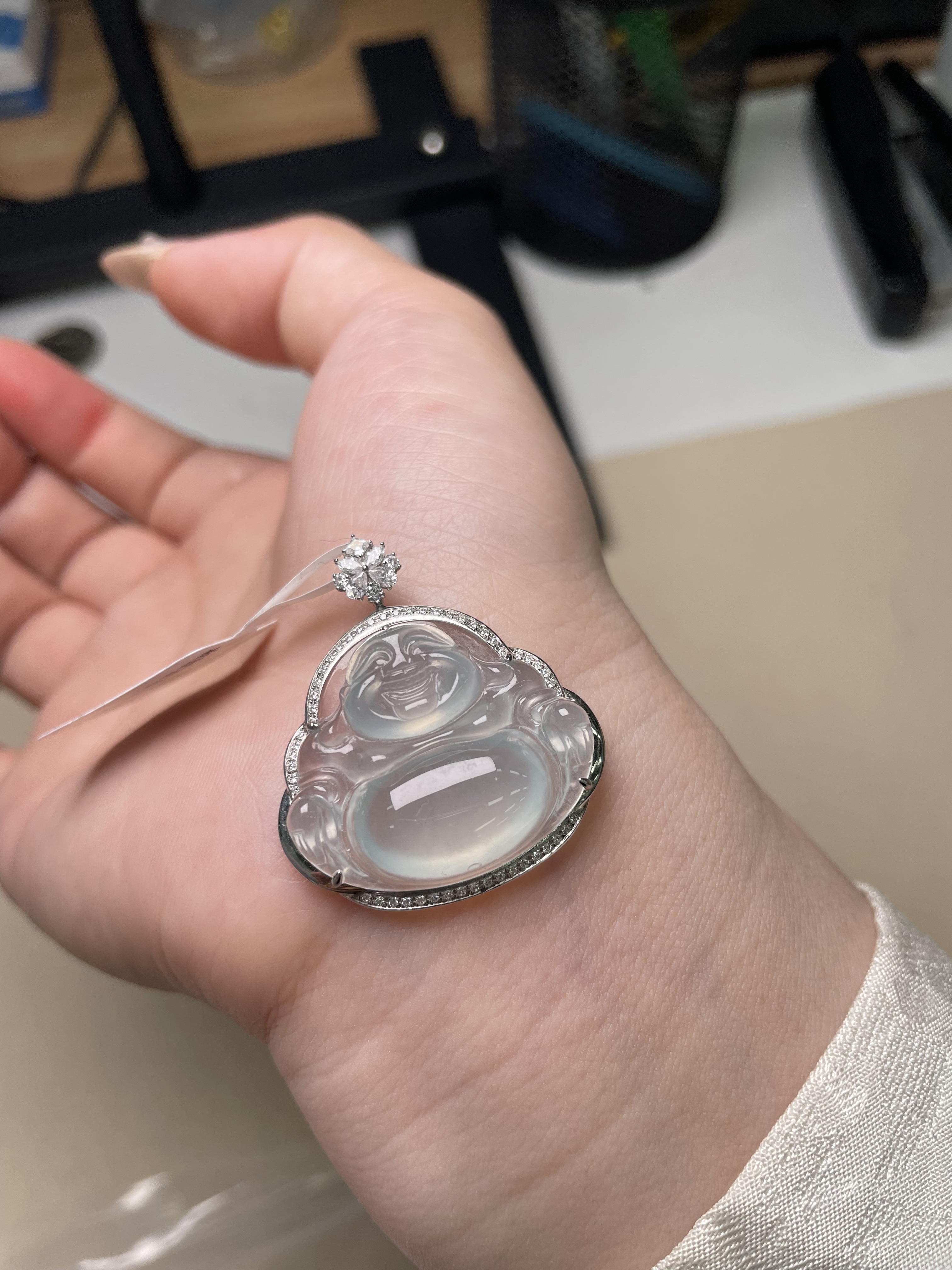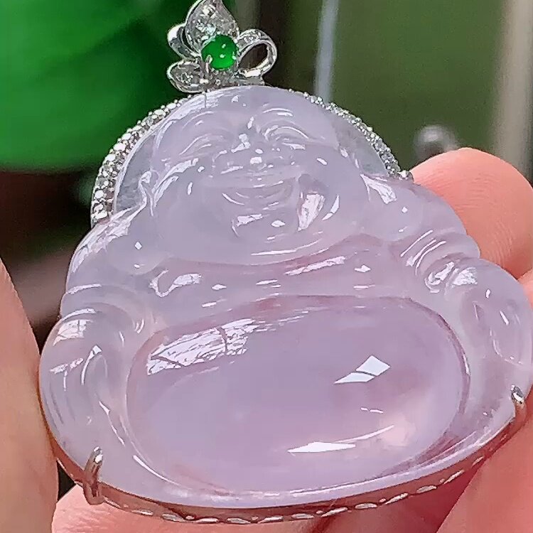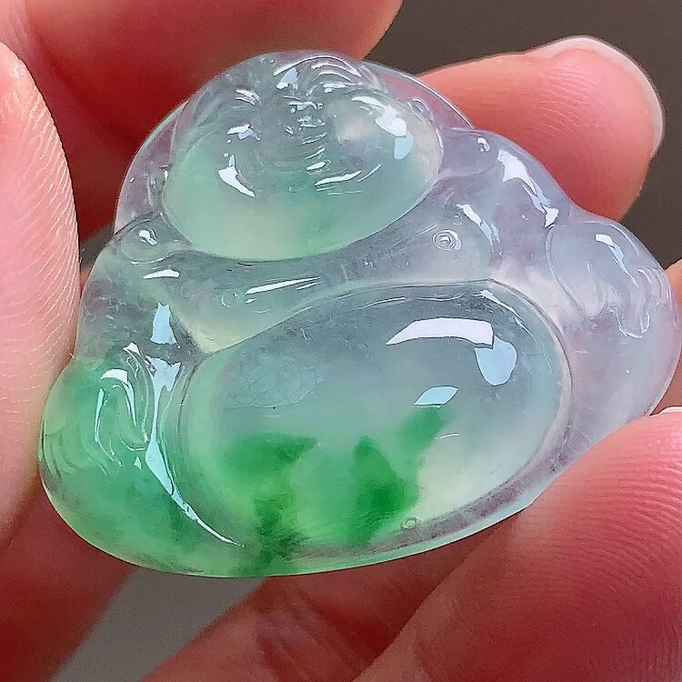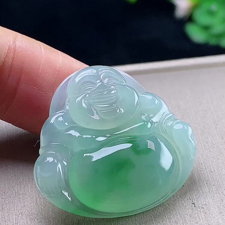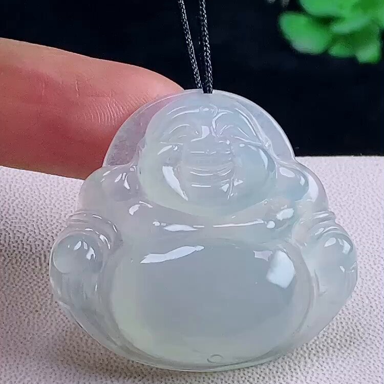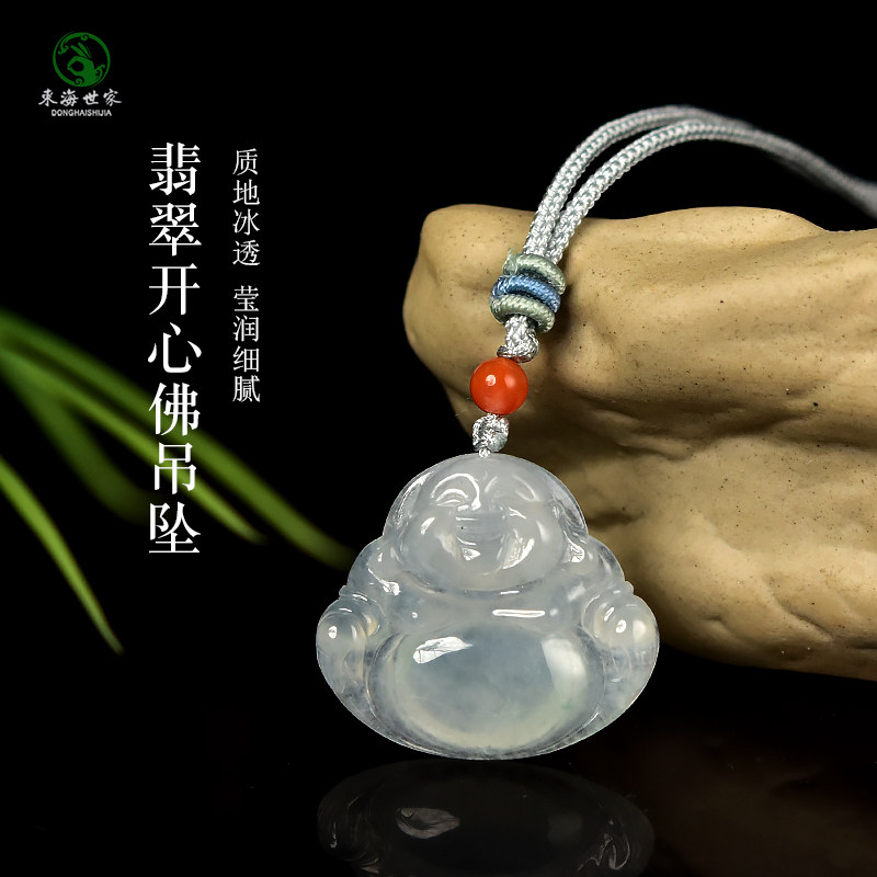 翡翠林 缅甸老坑白月光翡翠佛公吊坠天然A货冰种大肚佛笑佛可开盖