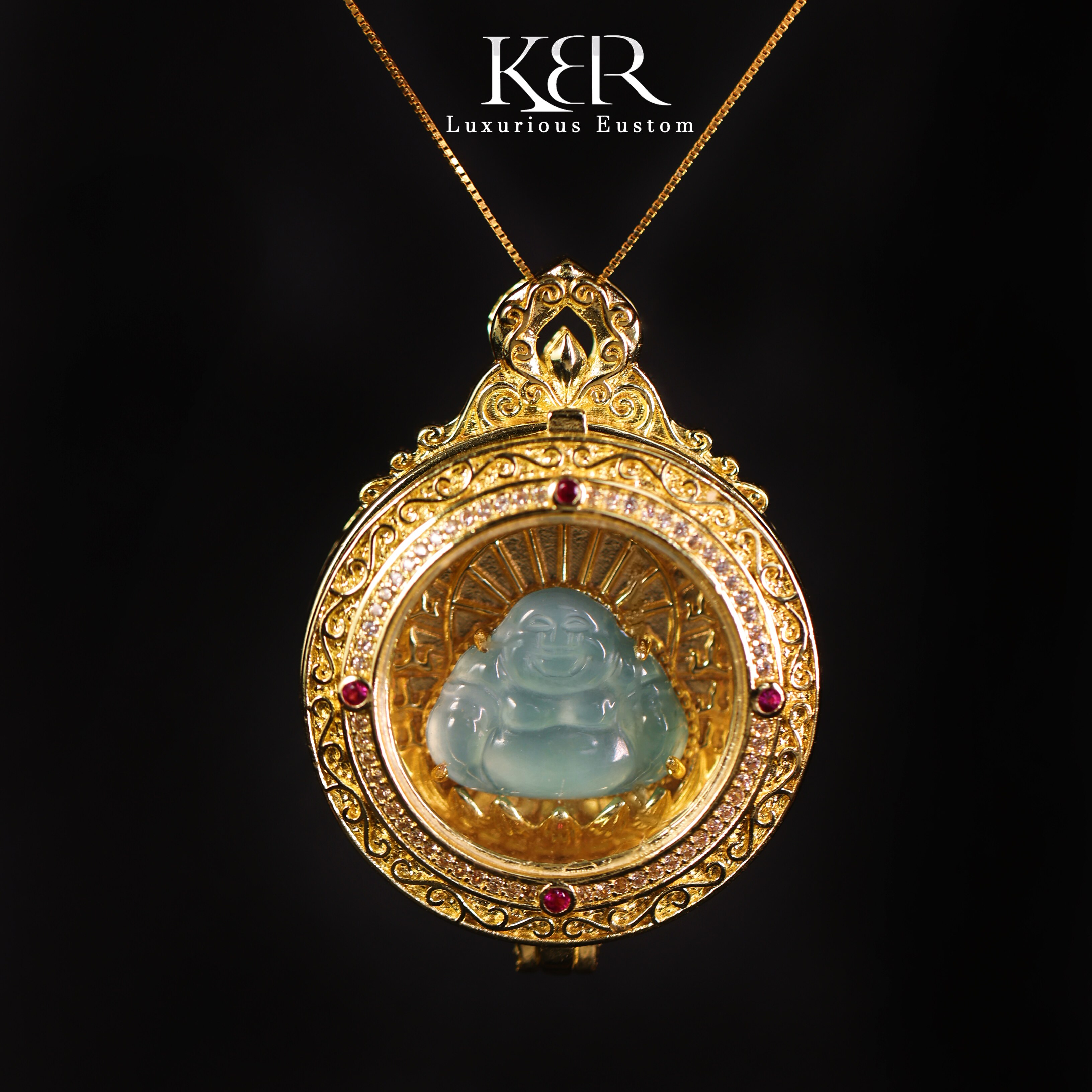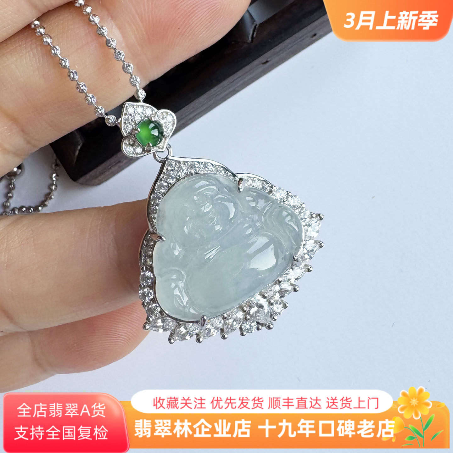 【颖有尽有】新款高冰豪镶嘎乌盒翡翠佛公吊坠项链简约KBR0303036