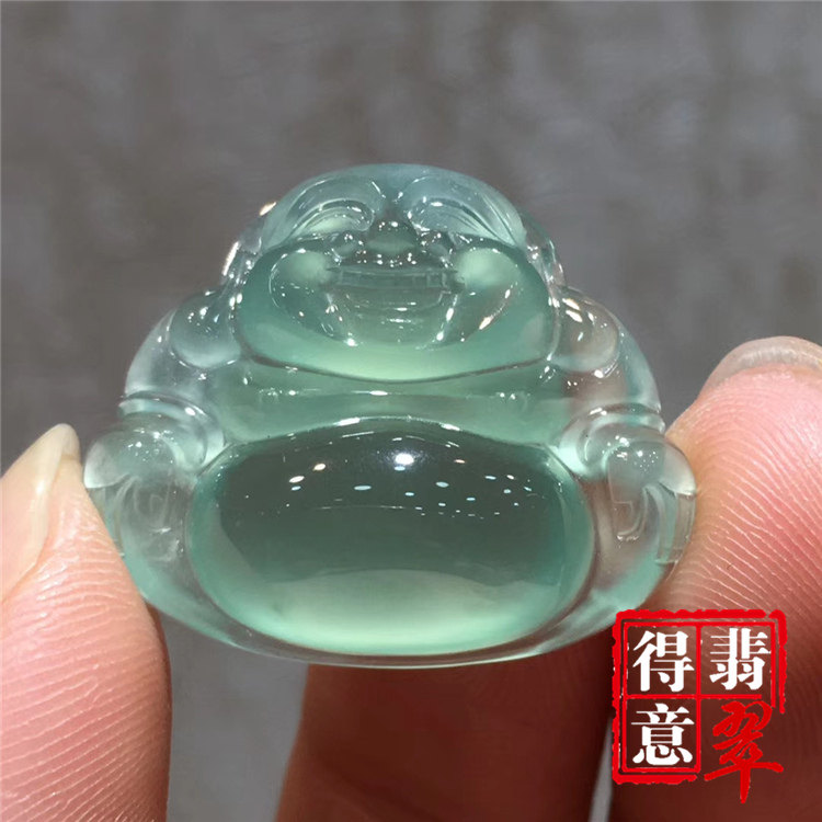 H334 天然A货翡翠佛公吊坠约13mm冰蓝水挂饰迷你款首饰礼物