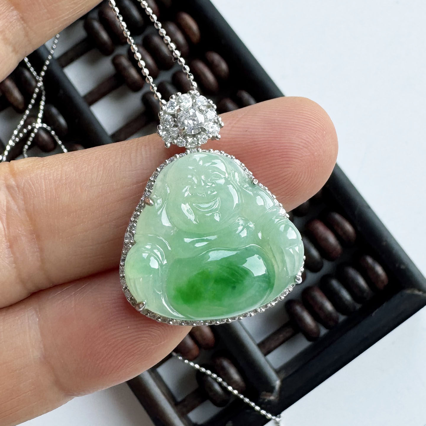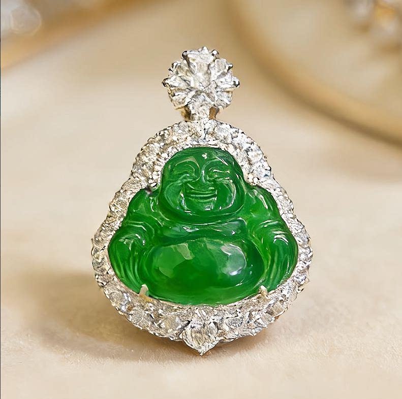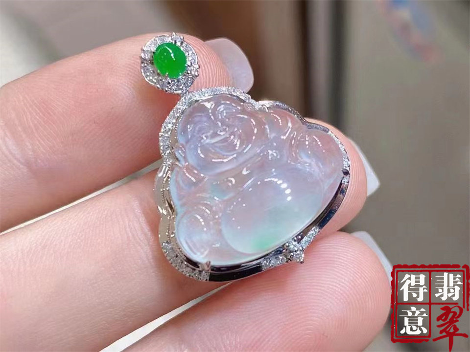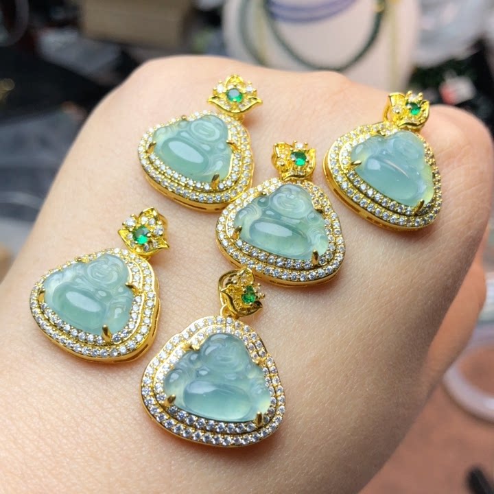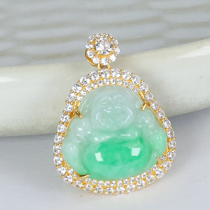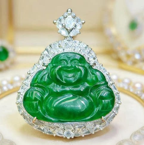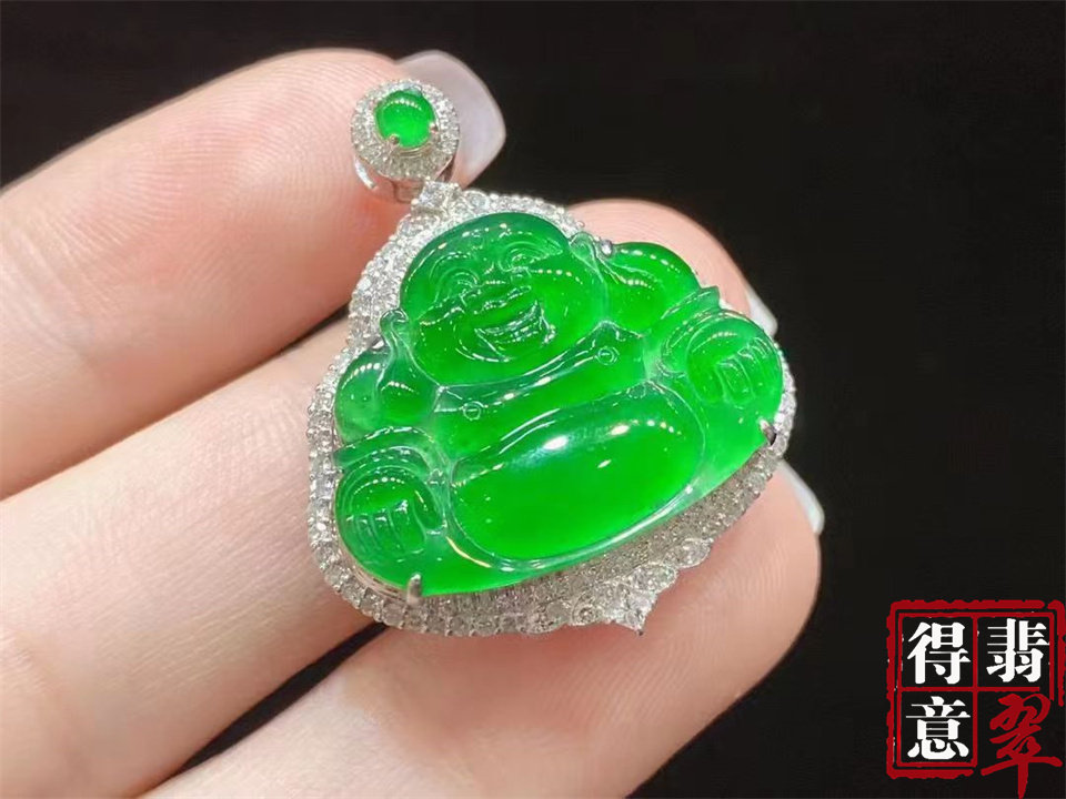 新款吊坠天然翡翠A货豪镶百搭精美大肚飘绿翡翠佛公吊坠节日送礼