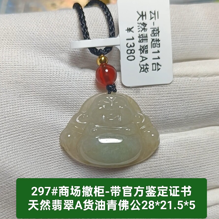 商场撤柜-天然A货翡翠佛公吊坠玉坠挂件 带官方证书保真品礼物297