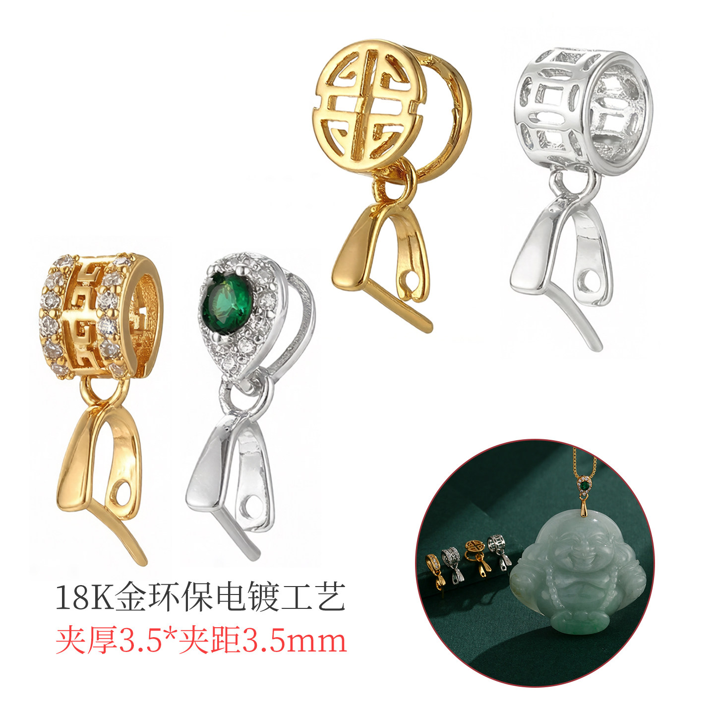 翡翠平安扣专用扣头18K金吊坠扣头配件diy夹扣瓜子扣佛公玉坠扣子