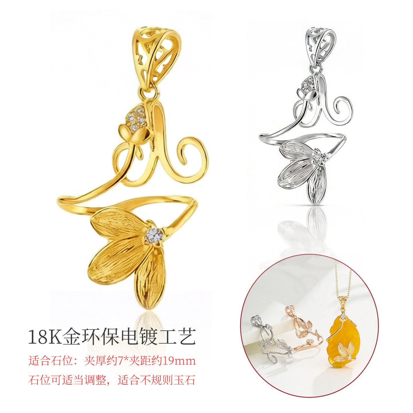 不规则随形可调节吊坠空托女镶嵌琥珀蜜蜡翡翠佛公观音万能吊坠托