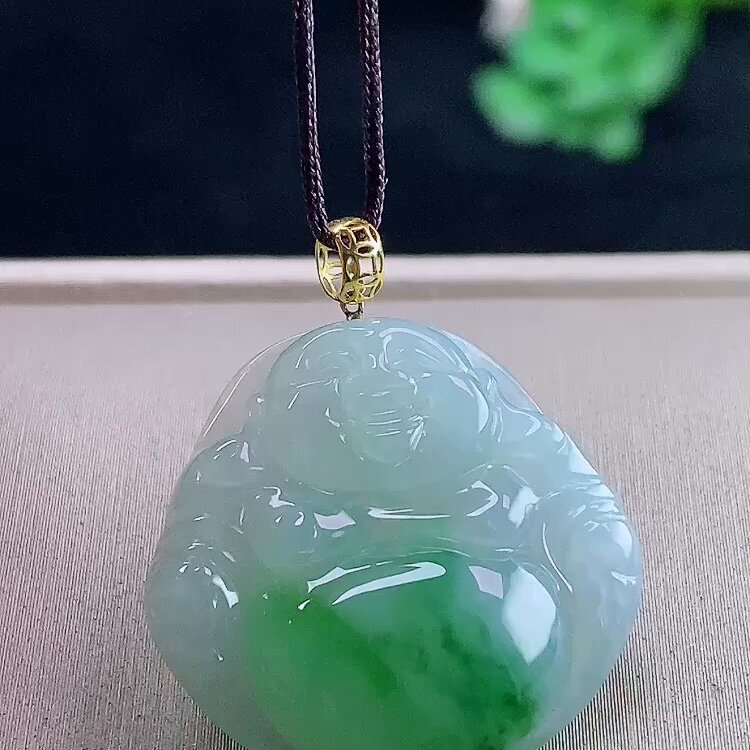 宫里上新蓝水翡翠佛公吊坠女弥勒佛玉佛项链玉挂坠生日礼物送妈妈
