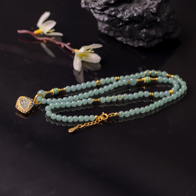 翡翠佛公蓝水珠手串手链毛衣链S925银镶嵌冰种缅甸简约鉴定证书