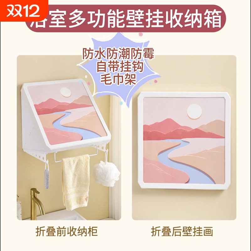 浴室壁画收纳箱洗澡放衣服神器卫生间挂画收纳免打孔折叠置物架子