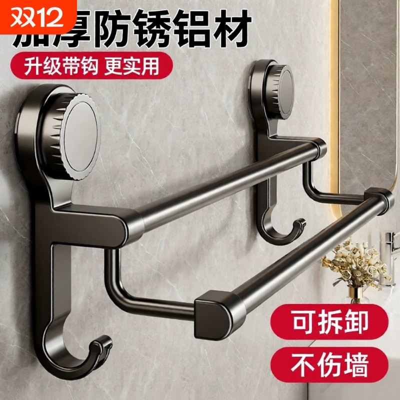 毛巾架卫生间免打孔毛巾置物架浴室吸盘挂架浴巾架子毛巾置物挂杆