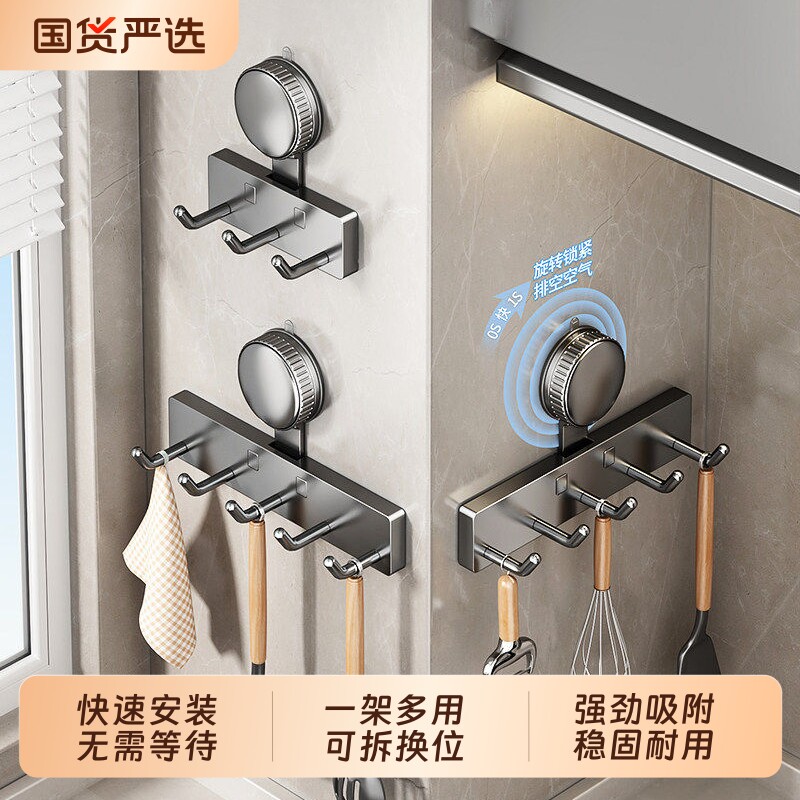 吸盘厨房挂钩墙上多功能置物免打孔强力承重锅铲勺子铲子收纳架子