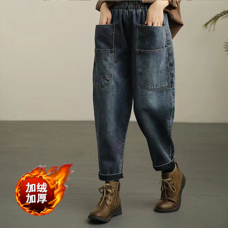 - 加绒牛仔裤女小脚弹力