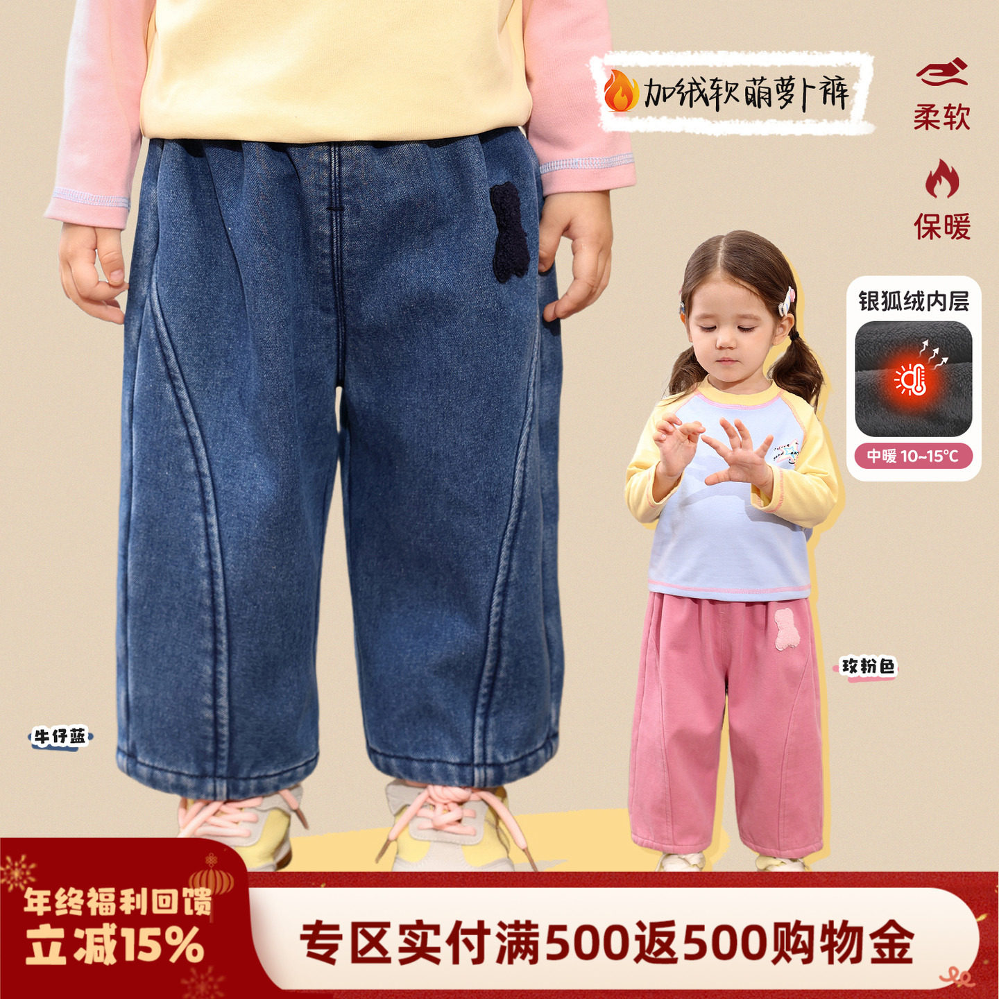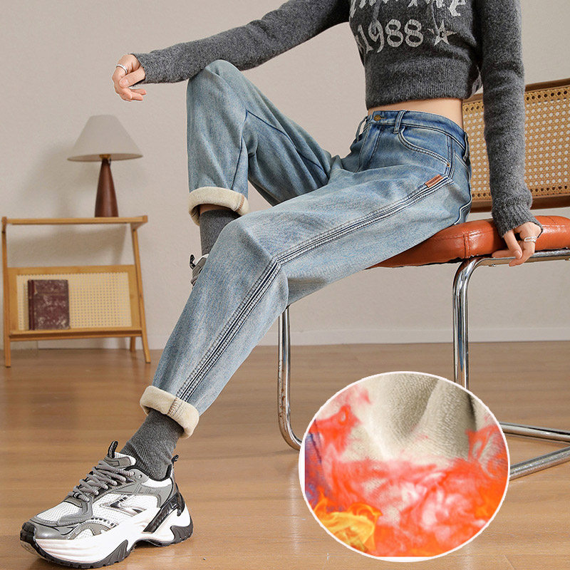 - 女士加绒牛仔裤