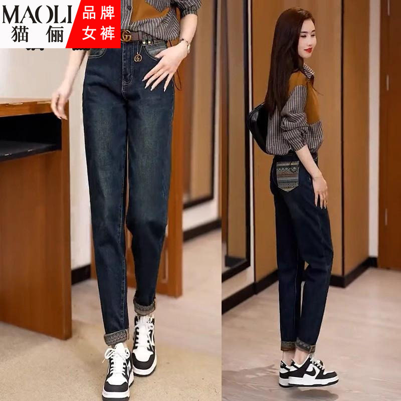 - 大码女哈伦牛仔裤长裤