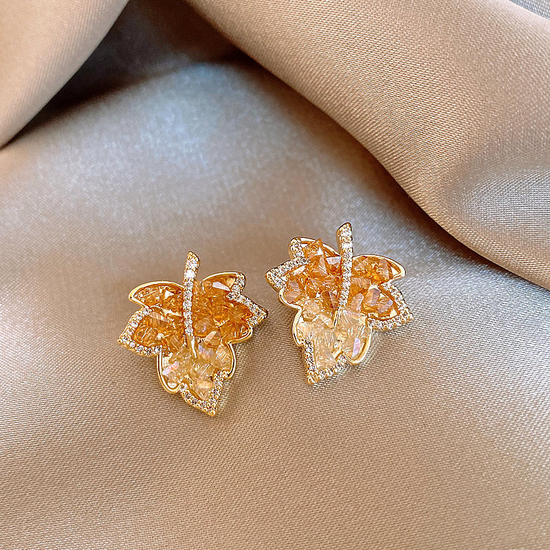 渐变枫叶耳钉女款小众独特微镶时尚耳环高级感气质耳饰品时尚百搭